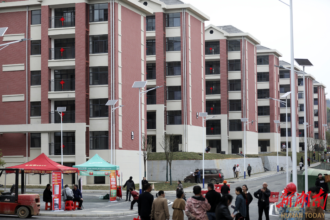 ▲4月7日,资兴市兴宁镇集中安置点二期,安置户在领取新房钥匙后看房。 李科 摄(湖南图片库)