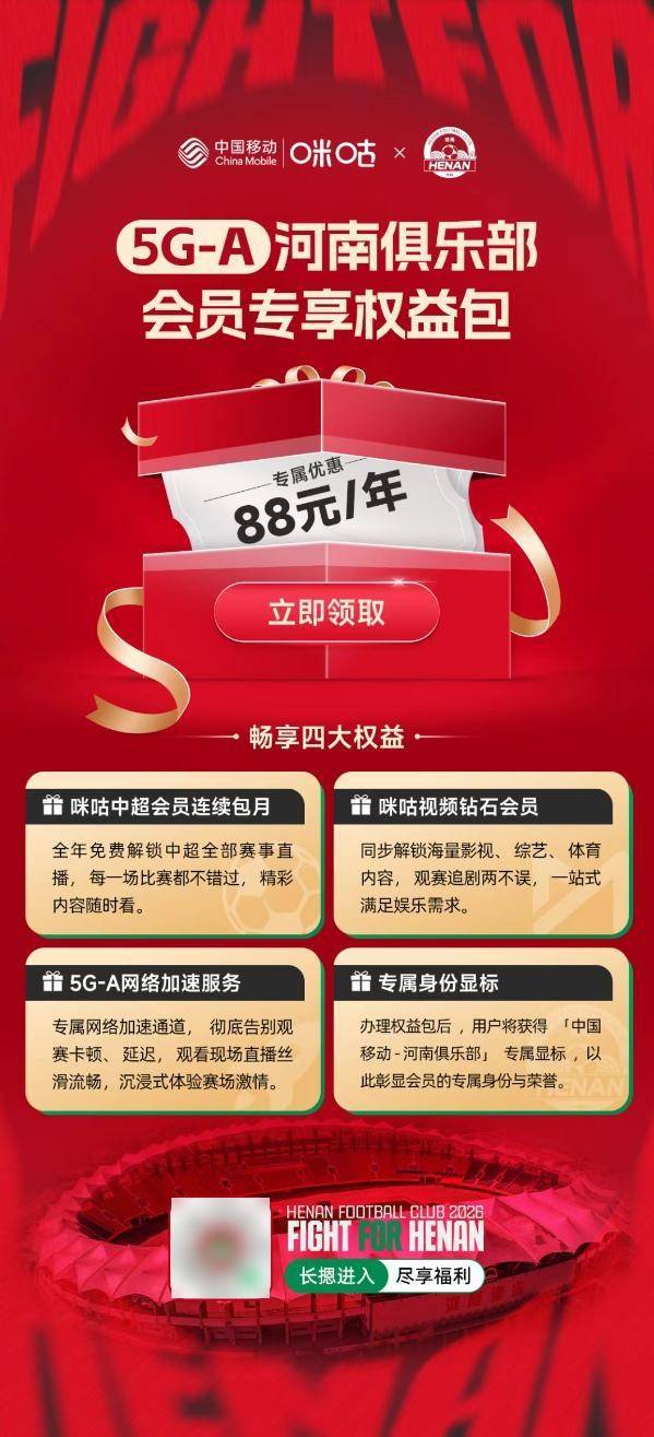 本次合作,是俱乐部立足球迷需求、延伸会员服务的重要体现,俱乐部携手河南移动,将优质通信服务与足球观赛权益深度融合,打造集“丝滑观赛+专属身份+网络加速”于一体的会员专享包,让球迷在为河南队呐喊助威的同时,享受到实实在在的福利与归属感。