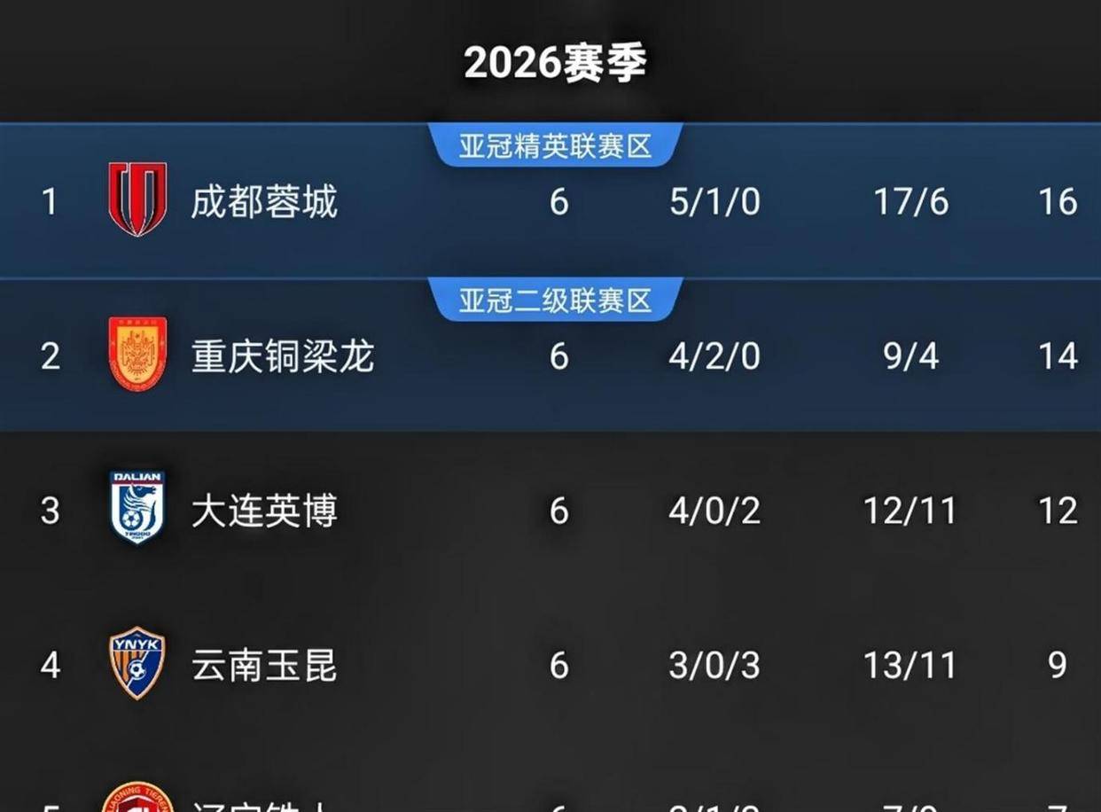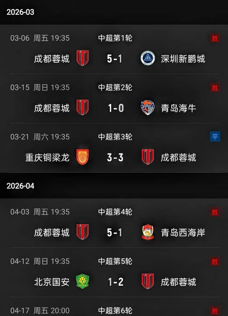 成都蓉城本赛季的表现确实令人印象深刻。 前6轮比赛他们取得了5胜1平,除了客场与重庆铜梁龙战成3-3平局外,其余5场比赛全部获胜。球队在进攻端展现出了强大的火力,前5轮比赛就轰入了16球,一度是联赛中攻击力最强的球队。在主场比赛中,成都蓉城更是保持了全胜战绩,先后击败了青岛西海岸、北京国安和武汉三镇等对手。